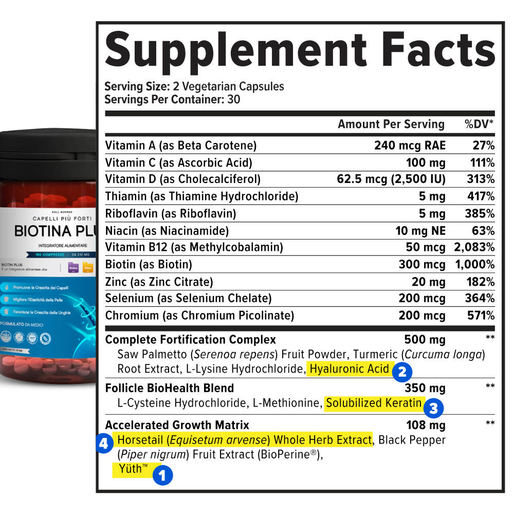 Raccomandiamo di assumere Biotin Plus per un minimo di 90-180 giorni per ottenere i massimi risultati.